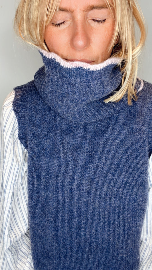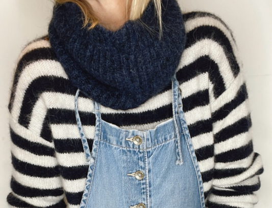 Laura Wavy Edge Knitted Snood - Heathered Navy Marl & Contrast Tipping