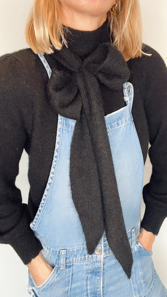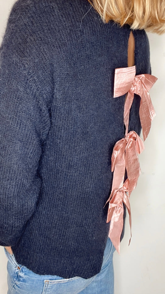 Interchangable Knitted Bow Tie Neck Chunky Knit Cardigan - Midnight