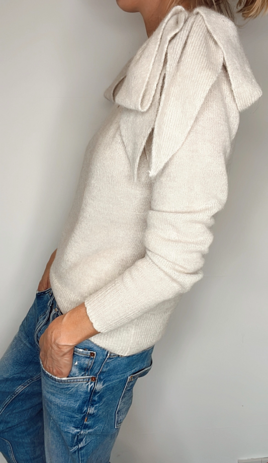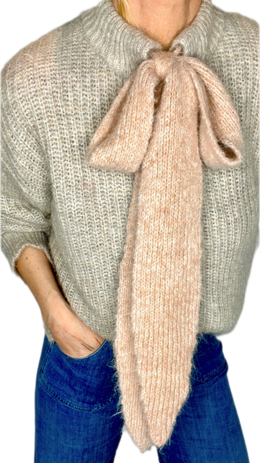 Interchangable Silky Bow Tie Neck Chunky Knit Cardigan - Porridge