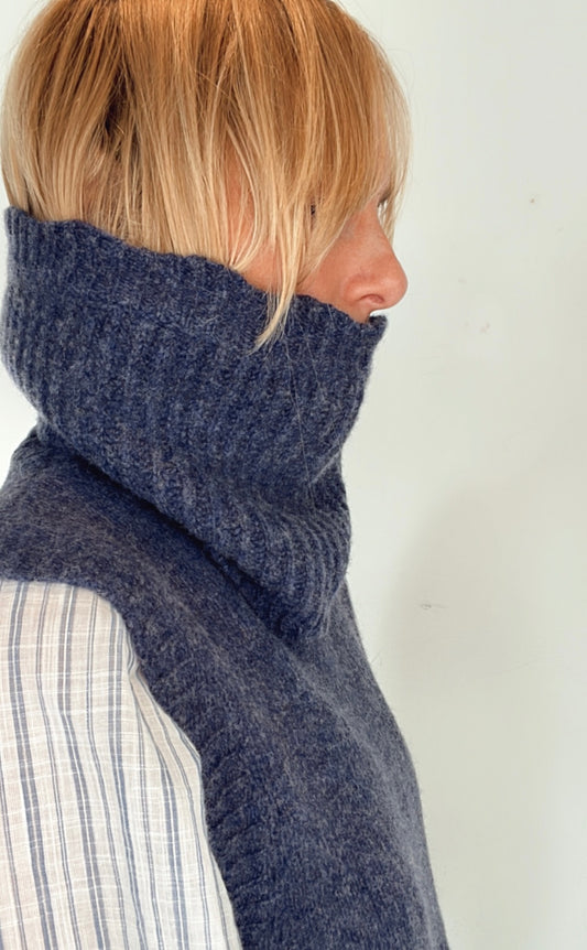 Laura Wavy Edge Knitted Snood - Heathered Navy Marl