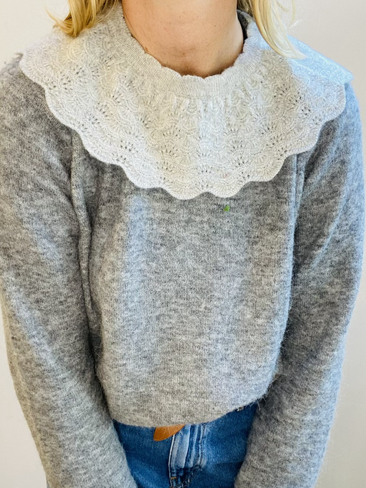 Cath Shell Stitch Knitted Button Collar - Silver Grey Marl