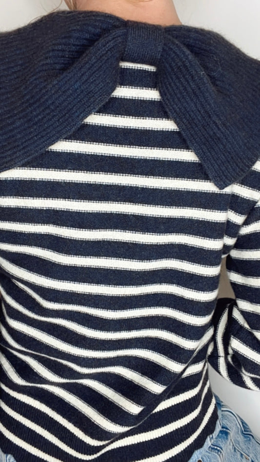 Interchangeable Bow Cuff Stripe Jumper - Dark Navy and Cream