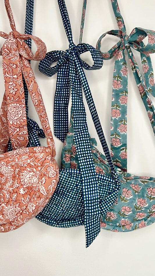 Polly Gingham Cotton Quilted Tie Shoulder Bag