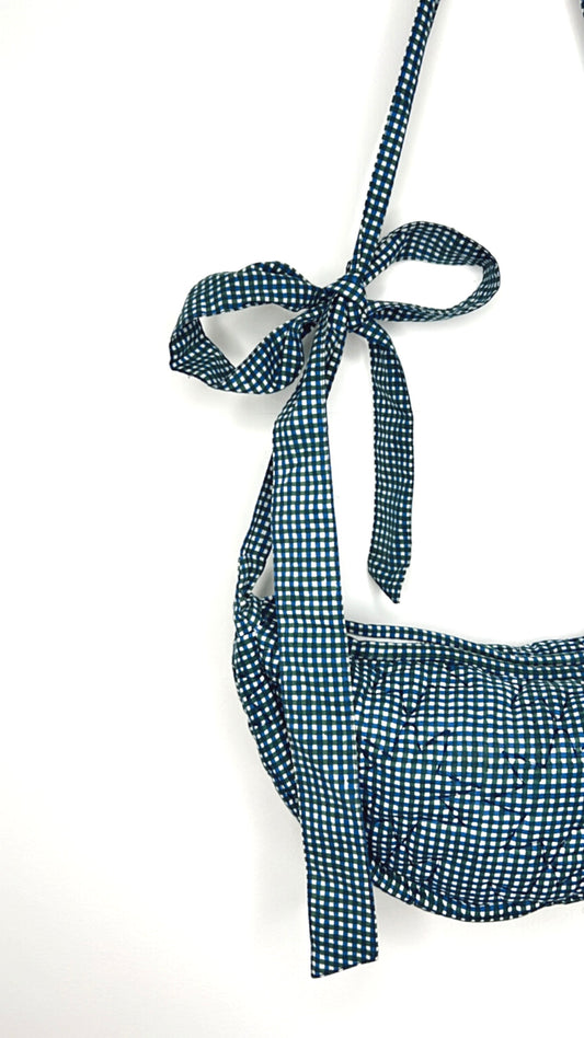 Gigi Micro Gingham Cotton Quilted Tie Shoulder Bag