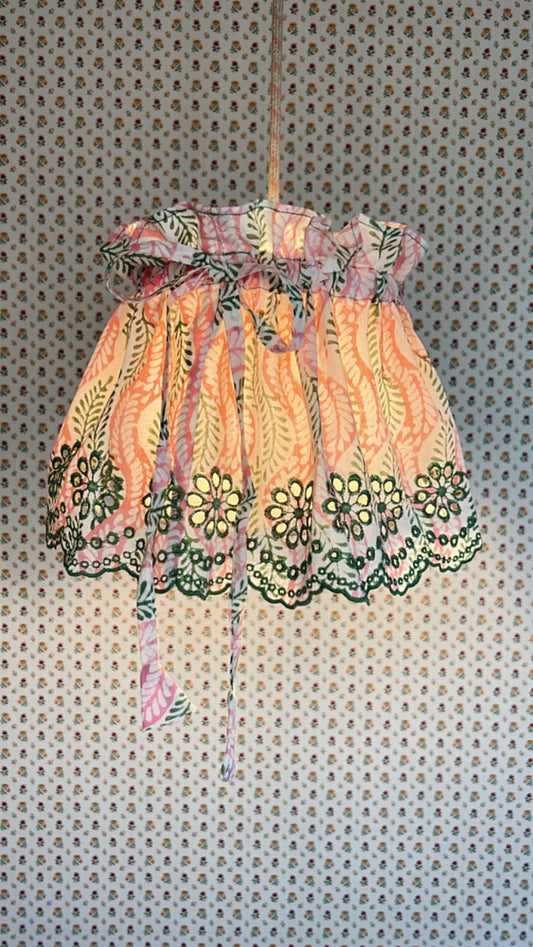 Medium Adjustable Broderie Trim Fabric Lampshade Cover - Teal & Pink Wavy Floral