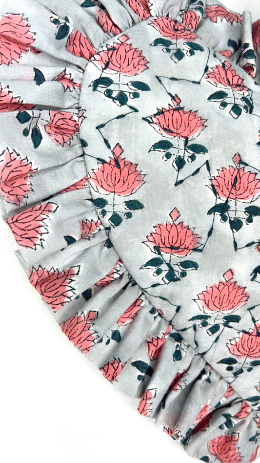 Ral Handprinted Floral Cotton Shirt - Denim Blue & Peony Pink