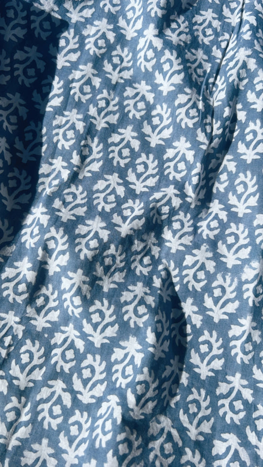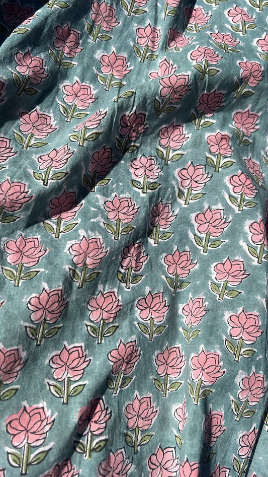 Ral Handprinted Floral Cotton Shirt - Denim Blue & Peony Pink