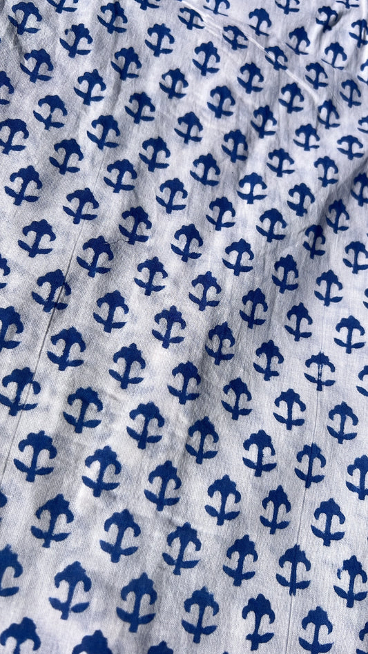 Fergus Handprinted Floral Cotton Shirt - Snow White & Indigo