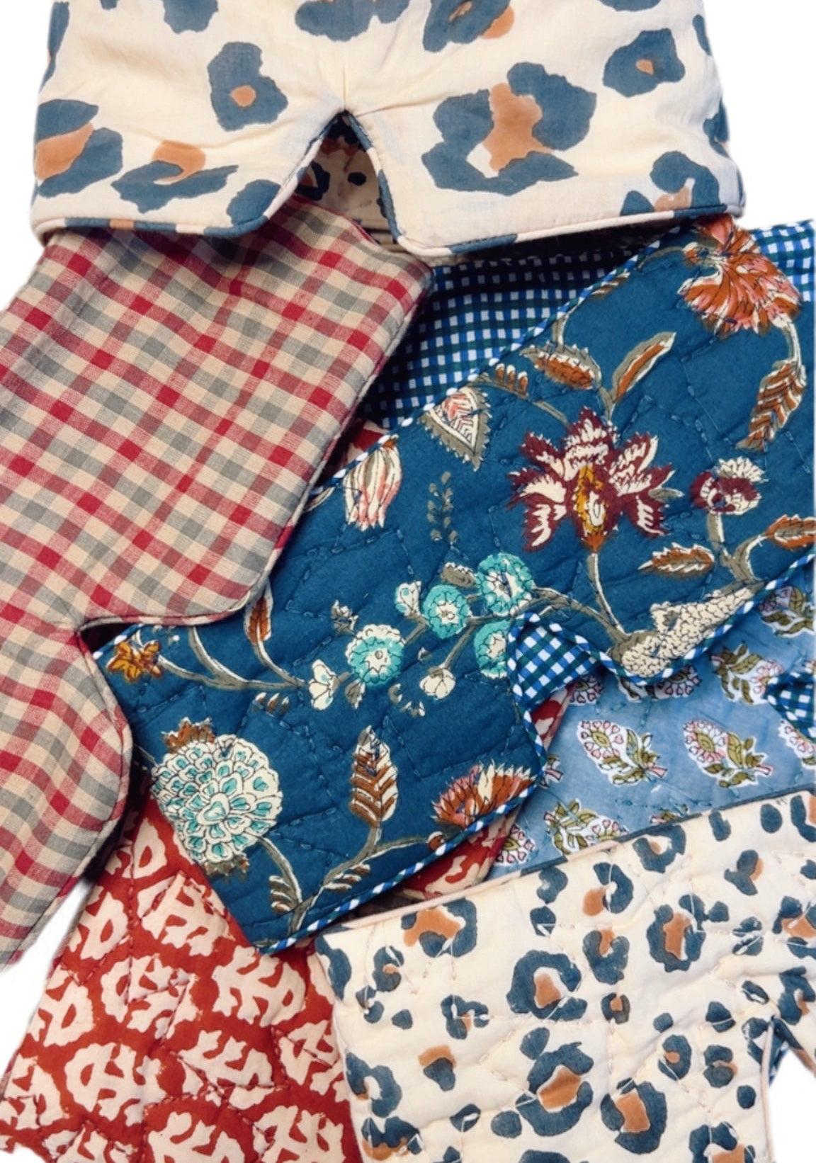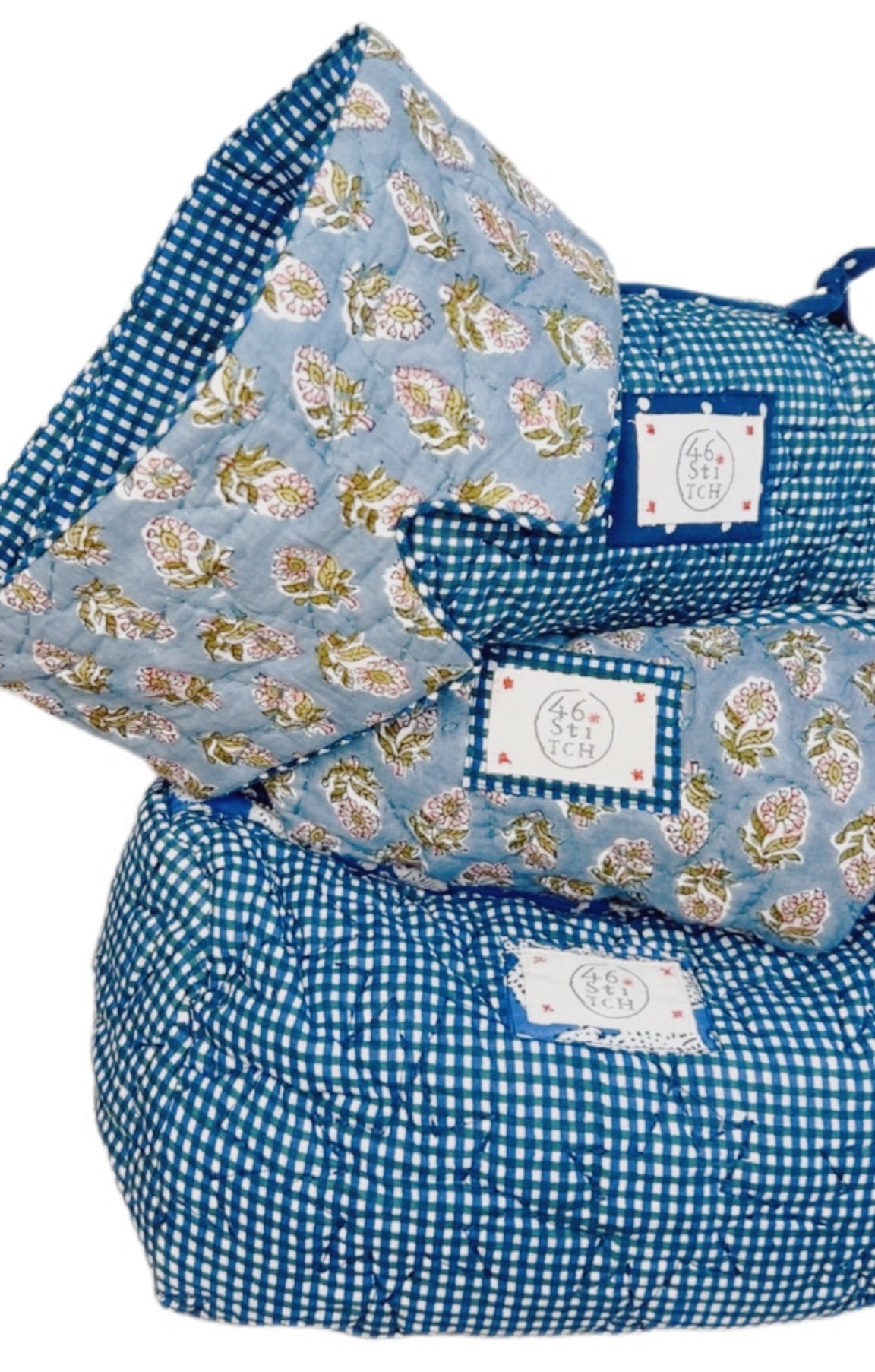 - Handmade using surplus, cotton quilted cloth