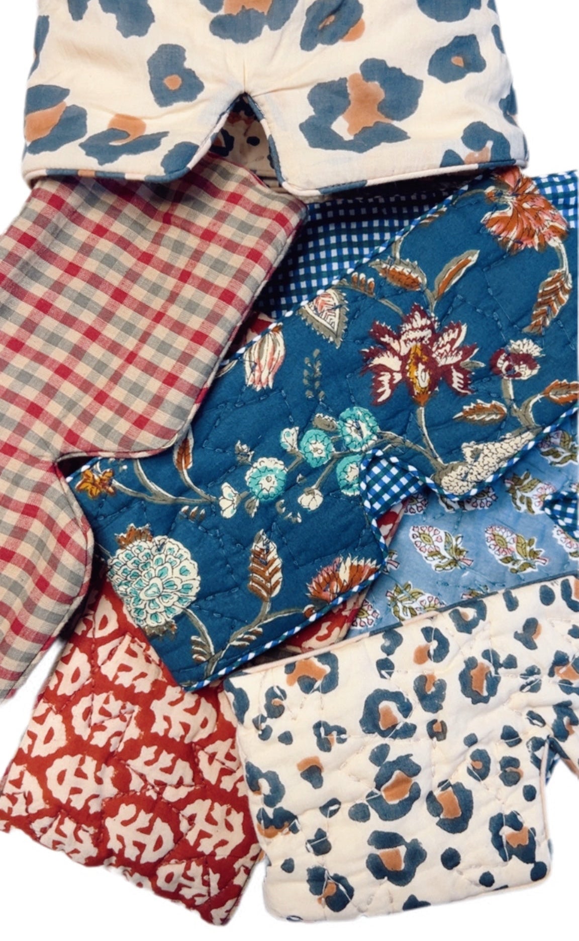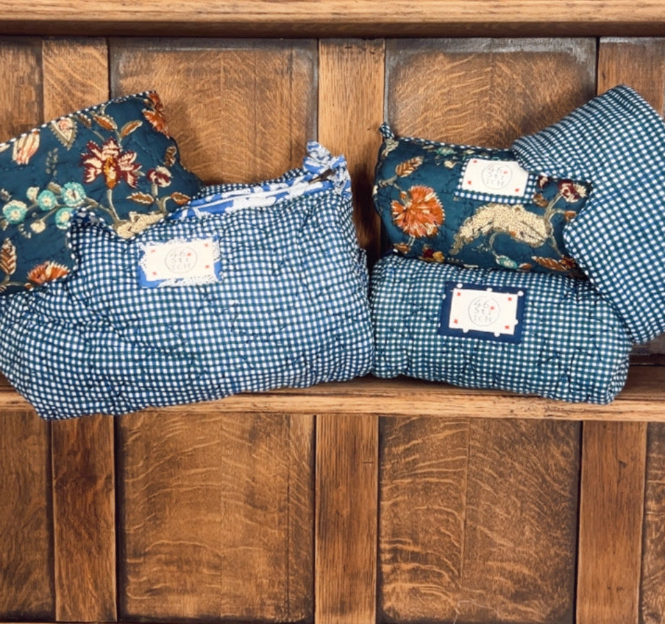 - Handmade using surplus, cotton quilted cloth