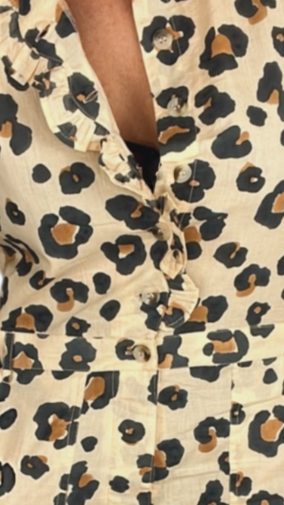 - A large scale, handlrinted animal design on 100% organic cotton. A light, natural coloured base with shades of charcoal and tabacco - a slightly washed out appearance for casual styling