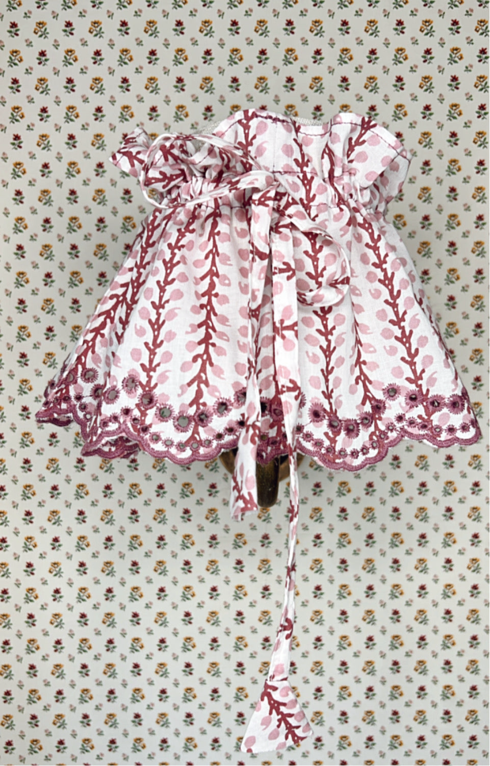 Small Adjustable Broderie Trim Fabric Lampshade Cover - Dark, Dusty Lilac Foliage